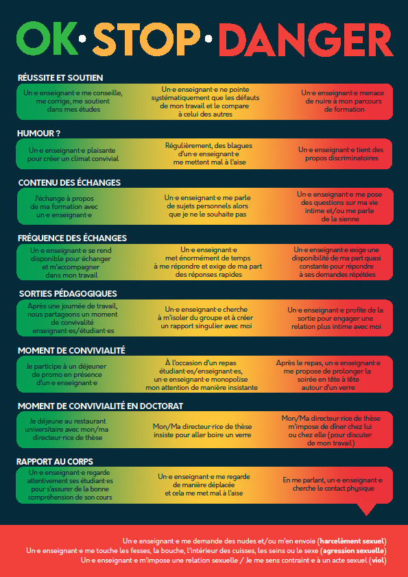 - https://cha-u.fr/ collectif de lutte contre le harcèlement à l’université – 09 82 60 37 53 (ou formulaire de contact https://cha-u.fr/mission-decoute).