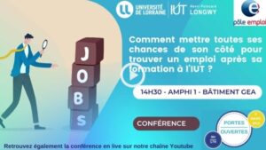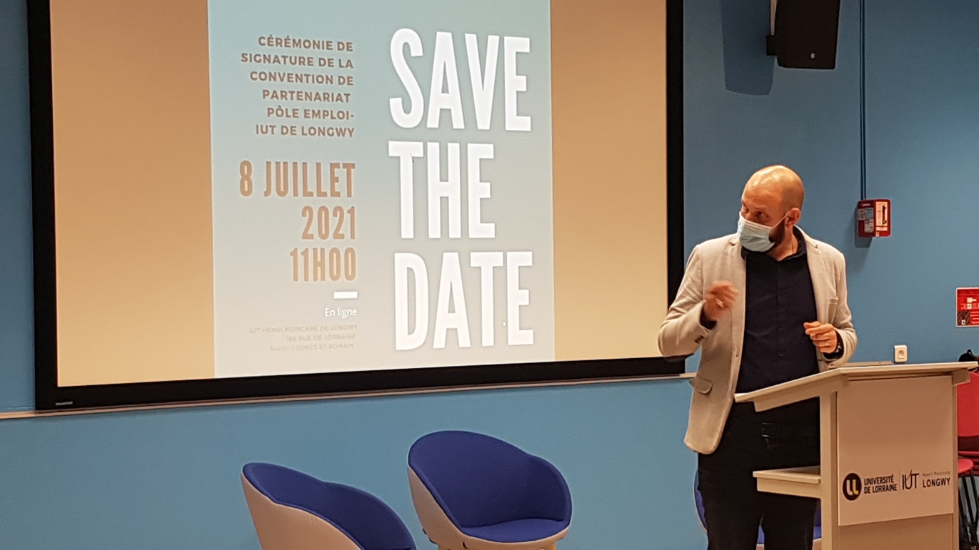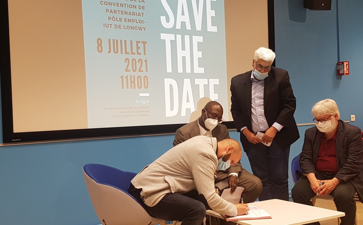 Une convention de partenariat entre l’IUT de Longwy et le Pôle Emploi a été signée le 8 juillet 2021. D’une durée renouvelable de trois ans, celle-ci prévoit de renforcer les actions en faveur de l’insertion professionnelle des étudiants à l’issue de leur formation et en transition vers le marché du travail. Ses modalités opérationnelles sont organisées autour d’actions d’une part de transmissions régulières d’offres d’emploi et, d’autre part, d’animation d’ateliers thématiques et de modules de formation.